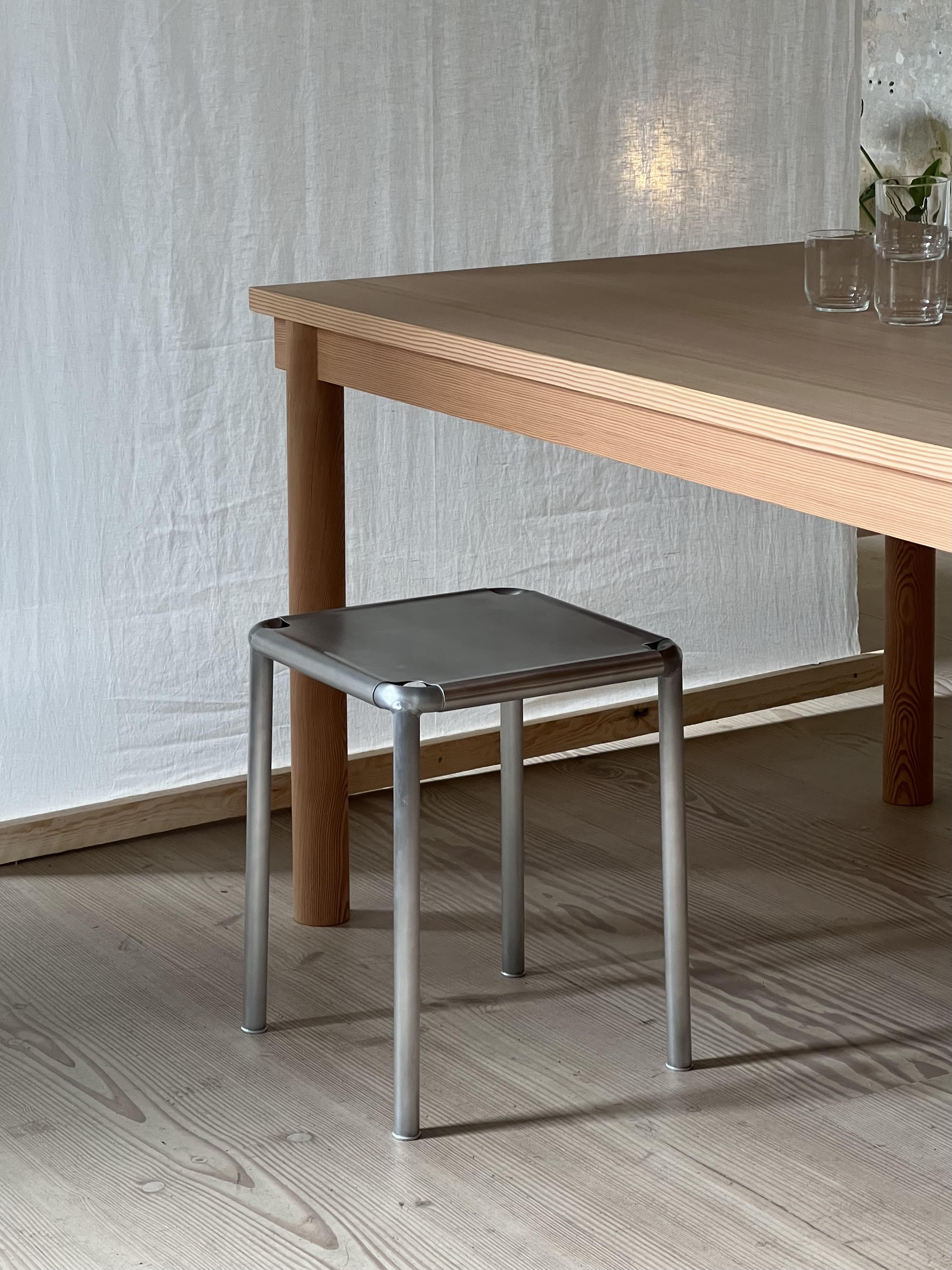 A natural continuation of the Otama visual language. The collection includes a range of tables, stools and shelving that share the perpendicularity and soft joinery of the chair.